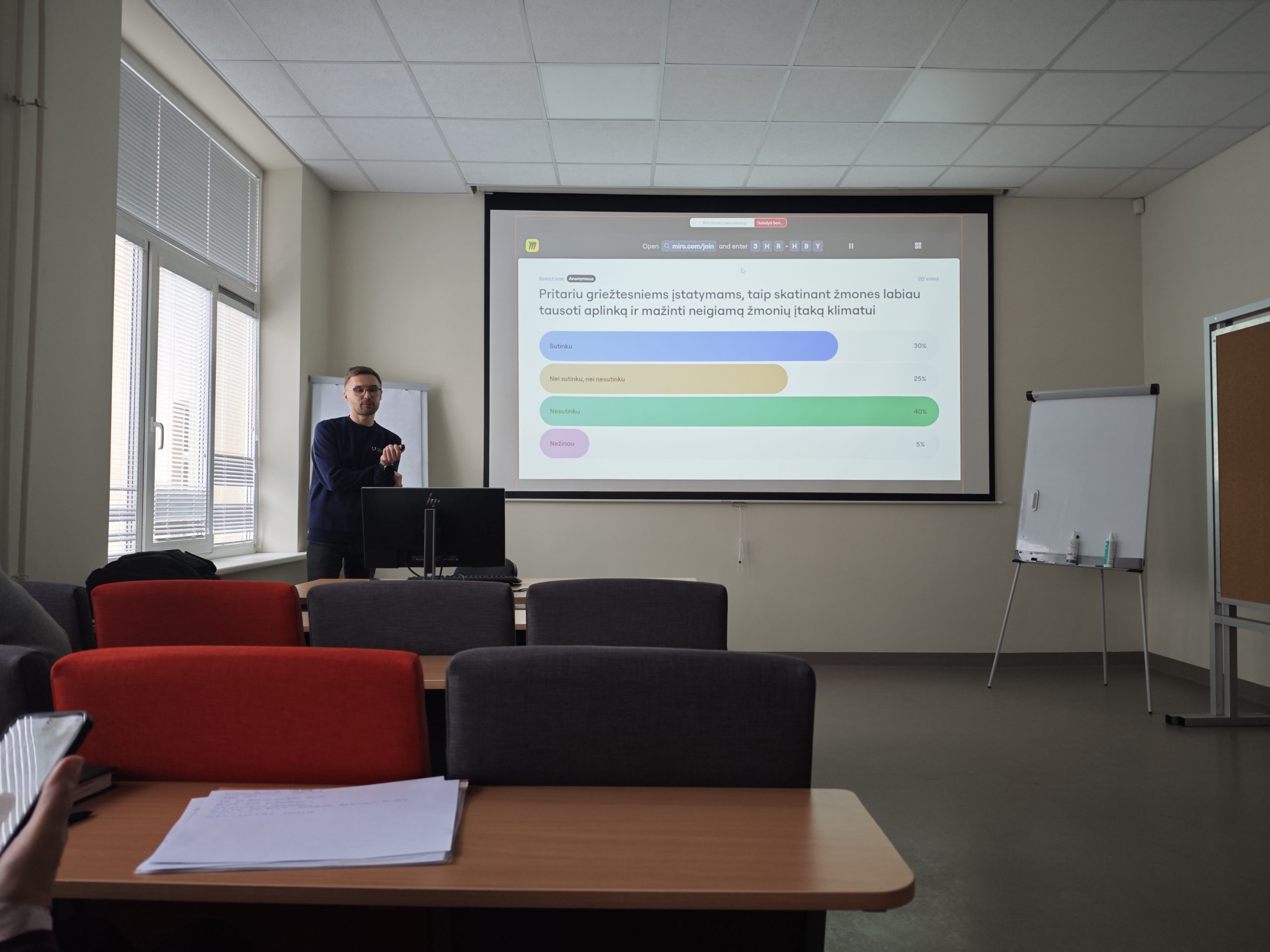 Paskaita tapo ne tik teorinių žinių šaltiniu, bet ir įkvėpimu atsakingai bei strategiškai mąstyti apie būsimą profesinį kelią klimato kaitos iššūkių kontekste.